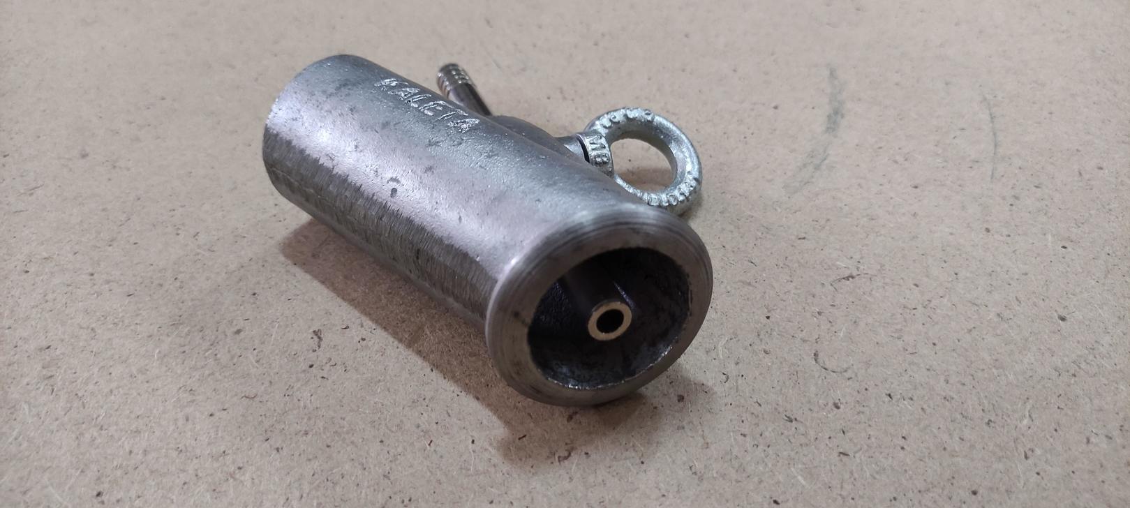 Сделан из алюминия. Состоит из стального винта с ручкой и латунного сопла.